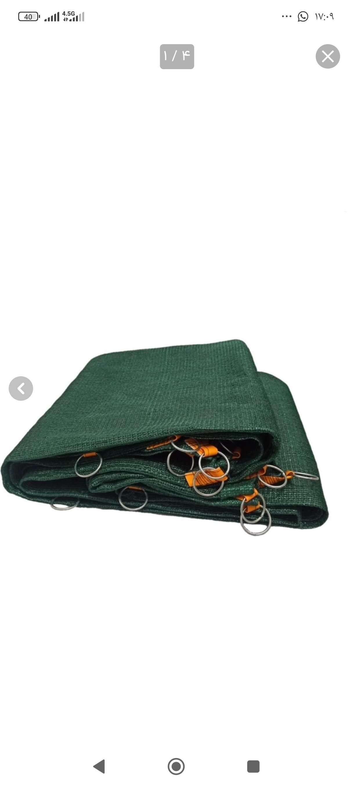 توری شید سایبان سبز 80 درصد(ابعاد 5 در 4)دور دوزی شده وحلقه دار