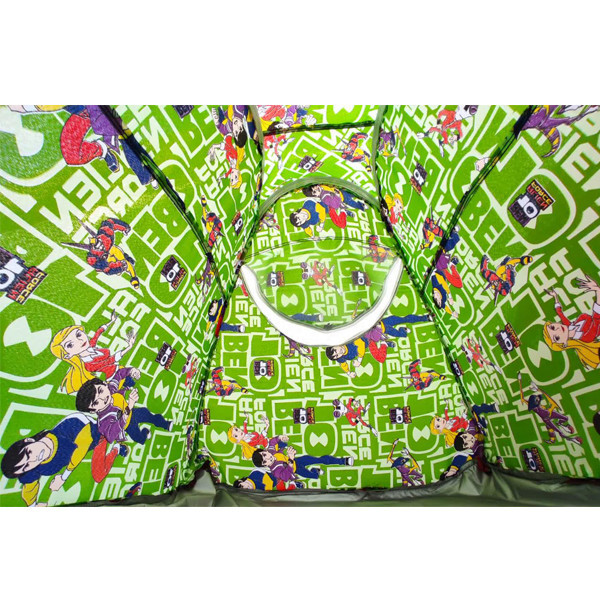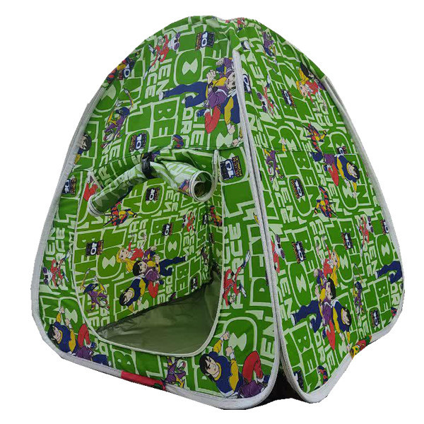 چادر بازی نوجوان مدل بن تن دارای یک درب و یک پنجره توری دار می باشد. این محصول دارای زیپ دنده 5 است. یک قلاب برای نگهداشتن درب کار شده است. ابعاد 140x140 ارتفاع 140 می باشد دارای کیف ست هم طرح نیز می باشد