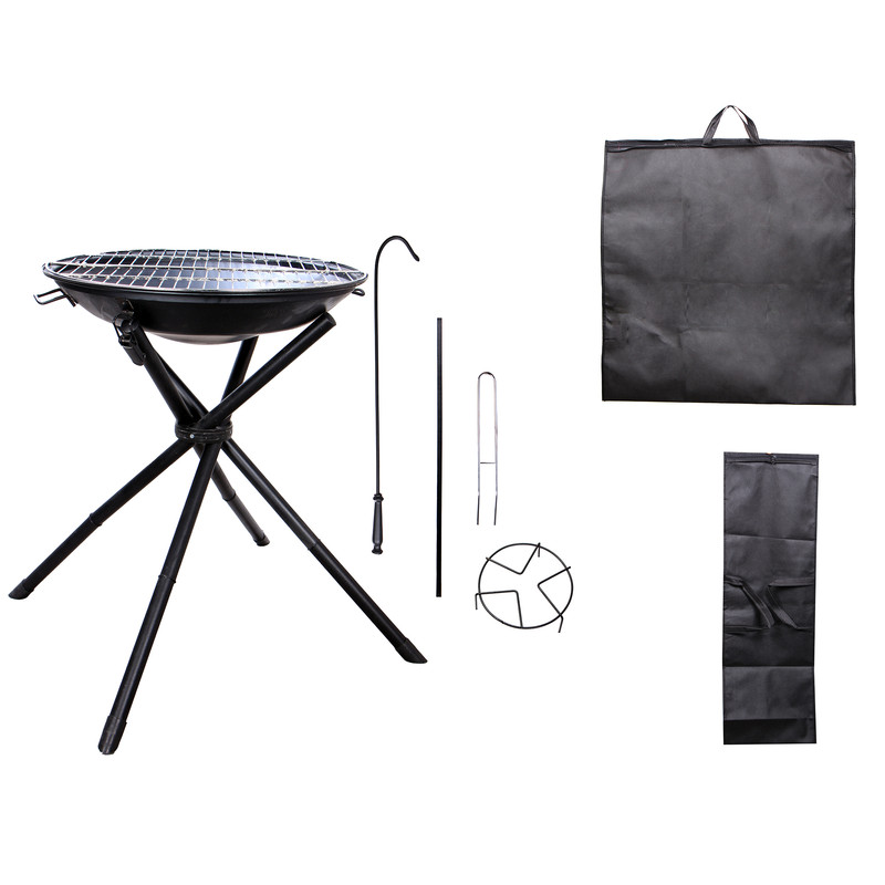 این کالا بهمراه سه پایه نگهدارنده کتری ، پایه های قابل تنظیم، توری گریل، دو ساک دستی همراه و انبر ذغال عرضه می شود.