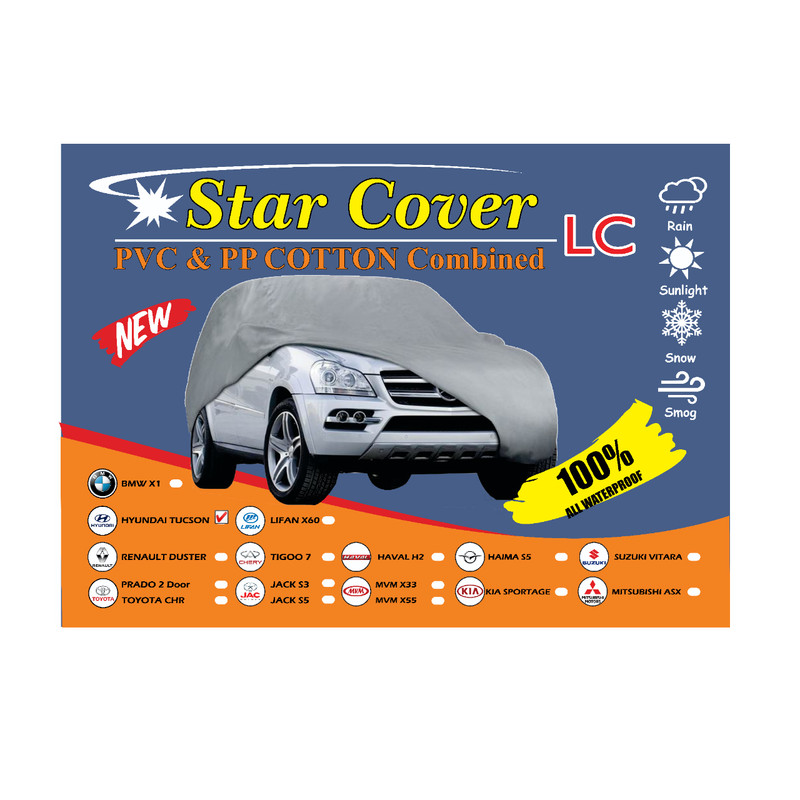 تغییر رنگ خودرو و کثیف شدن آن یکی از معضلاتی است که گریبانگیر بسیاری از صاحبان خودرو است. برای جلوگیری از این اتفاق سعی می شود که راه کم هزینه ای را امتحان کنند ولی باید گفت که این روش ها پاسخگو نمی باشد زیرا شرایط محیطی و آب و هوایی که در ایران حاکم است از قبیل باران ، تابش شدید آفتاب ، فضولات پرندگان و... این روش ها را برای شما بی تاثیر می کند. یکی از بهترین راه ها برای جلوگیری از این اتفاقات استفاده از روکش خودرو یا همان چادر خودرو است. روکش خودرو استار کاور مدل SC-55 مناسب برای هیوندای توسان متشکل از 2 لایه می باشد که لایهی خارجی این روکش مقاوم و ضد آب بوده و لایهی داخلی آن آستری نرم و ضد خراش طوسی رنگ دارد. وجود چنین آستر نرمی مانع از آسیب دیدن بدنه و رنگ خودرو در هنگام استفاده خواهد شد، همچنین این روکش با داشتن روزنه هایی مانع از عرق کردن و چسبندگی روکش به خودرو خواهد شد. الیاف به کار رفته در ساخت این روکش از جنس PVC و کتان هستند. این روکش یا چادر تمامی قسمت های سطحی خودرو شما را می پوشاند.