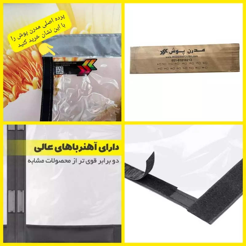 استفاده از درب های پلاستیکی /طلقی (مدرن پوش) برای جلوگیری از ورود سرما و حتی گرما به داخل ساختمان میباشد و یکی دیگر از مزیت های این پرده مانع شدن از ورود حشرات موذی به داخل ساختمان و اتاق و یکی از بهترین روش ها برای رهایی دائم از شر این موجودات موذی و حتی بیماری زا می باشد. مزیت درب پلاستیکی/طلقی (مدرن پوش) این است که علاوه بر دارا بودن مگنت های مغناطیسی(آهن ربا) قوی به راحتی نصب شده و حتی در صورت عدم نیاز میتوانید این درب را از روی چارچوب نصب شده جدا کنید و هر زمان که نیاز شد مجددا به سادگی آن را نصب کنید.این محصول از جنس طلق شفاف بوده و نوار حاشیه آن به رنگ طوسی میباشد که به جذابیت پرده اضافه کرده است.دقت کنید که روی پکیج های جدید این محصول جعبه وجود دارد و روی جعبه ادرس سایت و نام مدرن پوش مطابق تصاویر سایت درج شده است