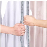 نکته 2: در ابتدا چسبک های مشکی رنگ موجود در داخل پک را به خود پرده متصل کنید و سپس روکش زرد رنگ چسب پهن یکسره بالا ی پرده را جدا سازی کرده و در بالای درب متصل کنید(لطفا دقت کنید که پرده را در ارتفاعی نصب کنید که پایین پرده به هیچ عنوان با زمین برخوردی نداشته باشد, در غیر این صورت آهنربا ها عملکرد خوبی نخواهند داشت) در صورتیکه به تنهایی نمیتوانید نصب کنید میتوانید از یک نفر کمک بخواهید.