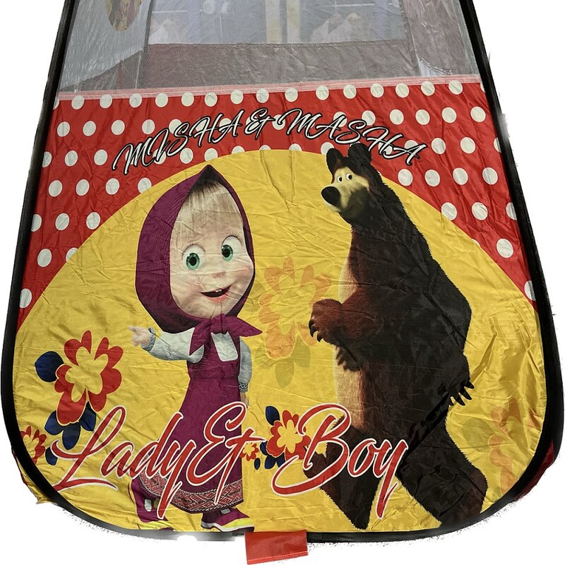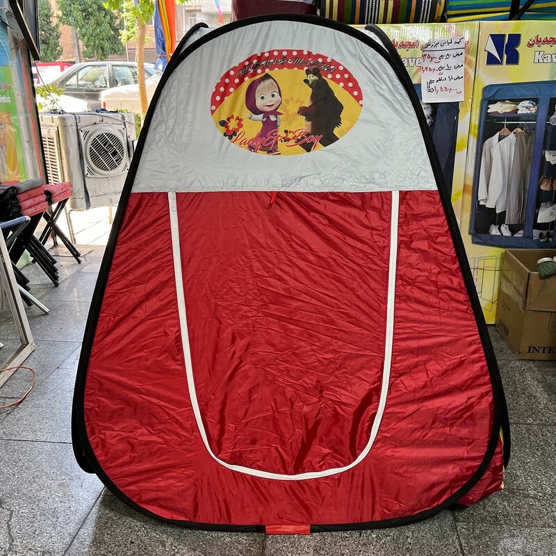 چادر بازی کودک خیمه کلبه طرح اشا میشا ماشا سیسمونی قرمز تاشو سفری کد2
