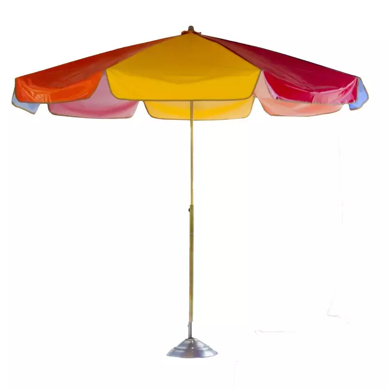 اگر قصد دارید اوقات فراغتتان را در بعدازظهرهای تابستانی در حیاط یا تراس خانه سپری کنید یا بهتازگی رستوران یا کافیشاپی افتتاح کردهاید که امکان سرو غذا و نوشیدنی در فضای باز را دارد، به یک یا چند سایهبان نیاز پیدا خواهید کرد. با تهیهی سایهبان میتوانید برای یک تا چند ساعت از تابش نور خورشید در امان باشید و در فضای باز یک لیوان چای یا غذایی دلچسب نوشجان کنید. پارچهی استفادهشده برای این سایهبان حالت نایلونی دارد تا حتی هنگام بارش باران نیز خیس نشوید اما در بارش طولانی مدت ضدآب نیست. طول یا قطر کلی پارچهی این محصول برابر با 250 سانتیمتر یا دو متر است که فضای نسبتا خوبی را پوشش میدهد. برای بدنهی اصلی یا پایهی سایهبان از لوله آبکاری شده آهنی سایز 22 استفاده شده است تا استحکام و مقاومت لازم را دارا باشد و گذشت زمان باعث شکستن و آسیب دیدنش نشود. قسمت انتهایی میلهی پایه به قطعهای آهنی متصل میشود که حالت دایرهایشکل دارد. داخل این قسمت آهنی را میتوان با سیمان پر کرد تا سنگین تر شود. با سنگینکردن این پایهی آهنی، سایهبان در اثر وزش ملایم باد، واژگون نخواهد شد.