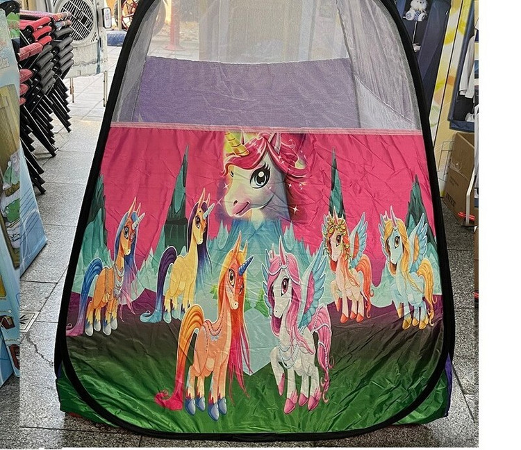 چادربازی چادر کودک خیمه کلبه تاشو فنری سیسمونی تولد کادو طرح یونی کورن پونی کد1