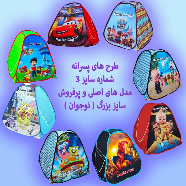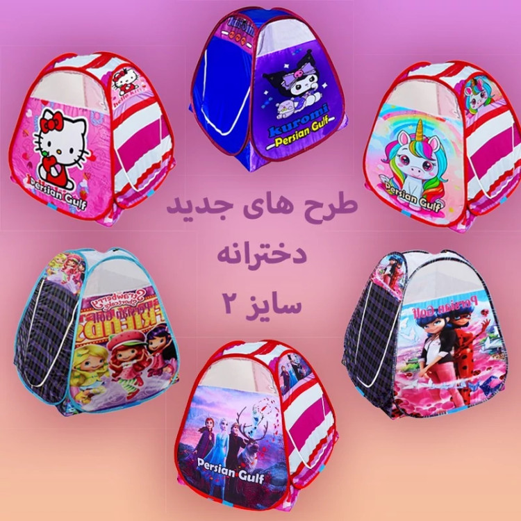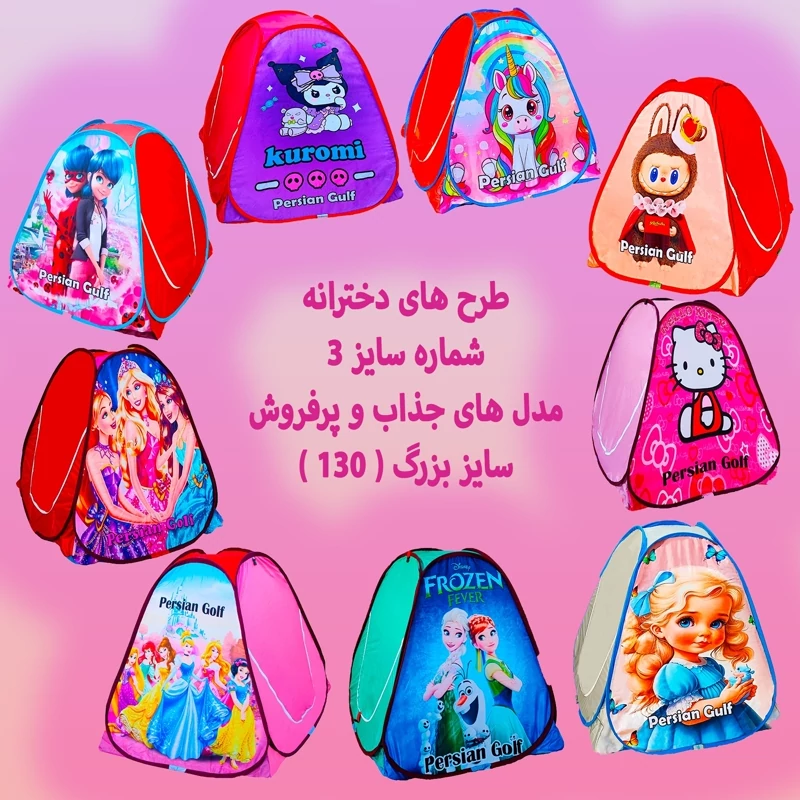 تذکر : کلیه چادر های کودک با طرح اصلی ثابت ارائه شده و طرح و رنگ قسمت درب چادر با توجه به وارداتی بودن آن ، متغیر میباشد.