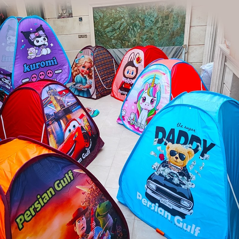 چادر کودک یکی از بهترین وسیله های بازی برای کودکان می باشد و آن هارا ساعت ها به بازی و سرگرمی مشغول میکند . چادر های کودک در رنگ و طرح های متنوع و جذاب تولید شده تا دنیای کودکان را زیبا تر کند . برای کودکان از نظر ذهنی بسیار مشغول کننده و باعث افزایش خلاقیت ، شادابی و اعتماد به نفس می شود. از منظر تربیتی می توان کودکان را به حفظ نظم ، پاکیزگی و مسئولیت پذیری تشویق کرد. این محصول با بهره گیری از فناوری چاپ دیجیتال ، استفاده از پارچه مرغوب شمعی و پولیستر و فنر های مستحکم تهیه شده است . محیط داخل چادر محلی مناسب برای اسباب بازی های کودکان می باشد این محصول با ظاهری زیبا دارای یک درب و پنجره می باشد و همچنین به راحتی در تمامی فضاهای باز و بسته قابل استفاده است همراه این چادر کودک یک عدد کیف برای حمل و نگهداری تقدیم عزیزان می شود.