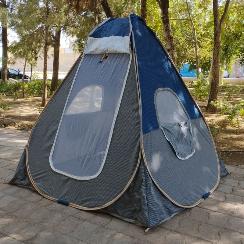چادر مسافرتی برنو ۴ نفره ۲۰۰×۲۰۰ سانت ابعاد کف چادر دارای جیب داخلی و بند آویز دارای ۸ گیره نگهدارنده سه پنجره توری ثابت و درب زیپ دو سر شماره ۱۰ دارای کیف کوله ای ست چادر جنس پارچه پلی استر