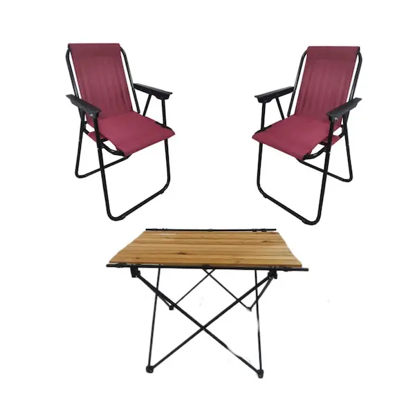 مدل: ست میز وصندلی تاشو سفری میز چوبی ترمو پایه فلزK003 به همراه کاور زرشکی
