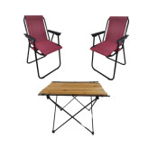 ست میز وصندلی تاشو سفری میز چوبی ترمو پایه فلزK003