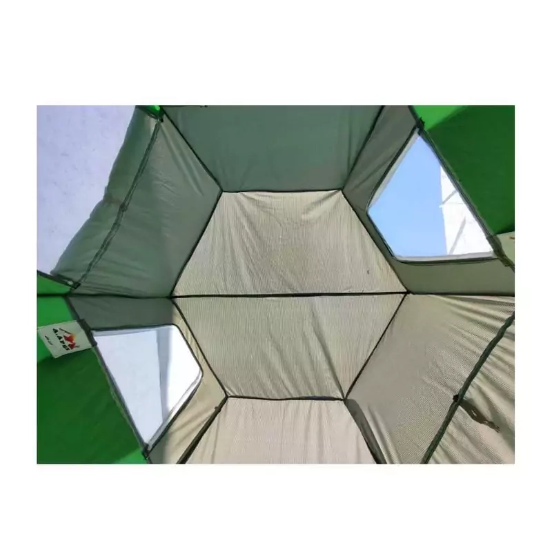 چادر شش دیواره مناسب برای طبیعت گردی و کمپینگ می باشد . گنجایش چادر 18 - 20 نفر است . جنس چادر برنو ضد آب می باشد . دارای یک در ، دو پنجره بزرگ و دو هواکش می باشد . دارای دو جیب داخل چادر و بند آویز سقف می باشد. در قسمت پنجره و در ها توری حریر درجه یک کار شده است . کف چادر ضخیم و ضد آب می باشد . دارای یک سایه بان و کیف ست همرنگ می باشد . ابعاد کف چادر 350x350 و ارتفاع 2.10 می باشد.