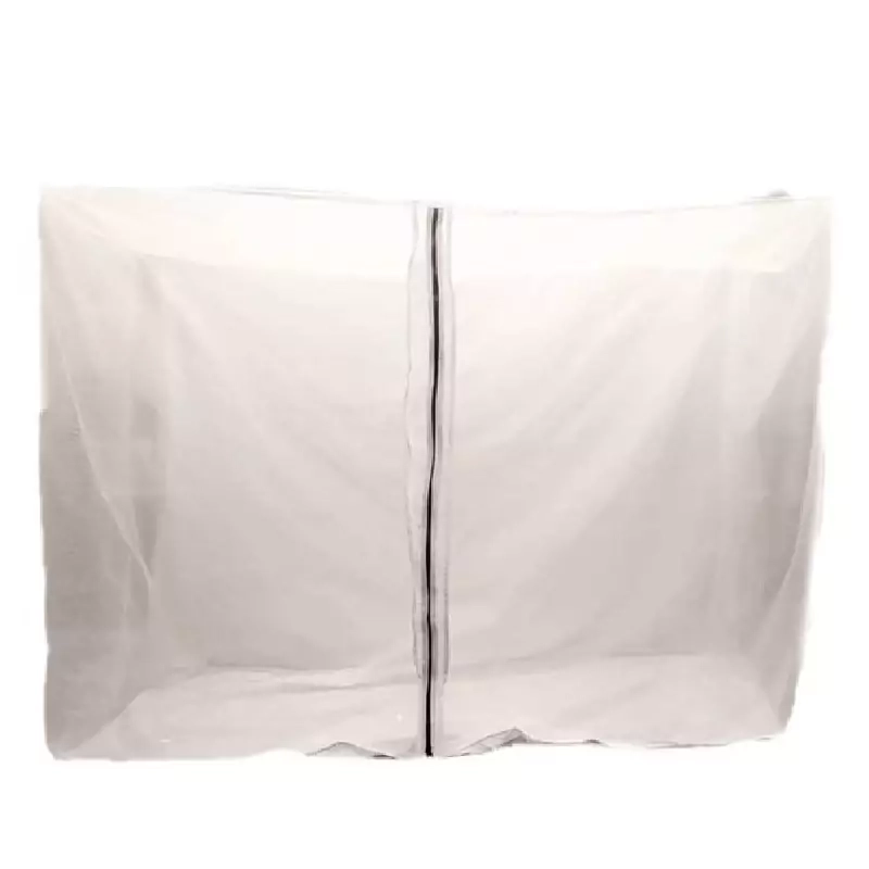 جنس تور با مش بندی بسیار ریز برای جلوگیری از ورود هرگونه حشره و تبادل هوای بهتر جنس کف اسپاند60 دارای 2زیپ10، کاور حمل و نگهداری گوشه ها دارای حلقه فلزی برای سهولت نصب دورتا دور نوار دوزی ابریشم