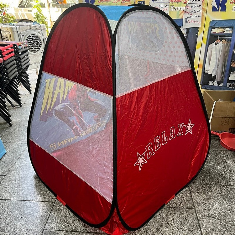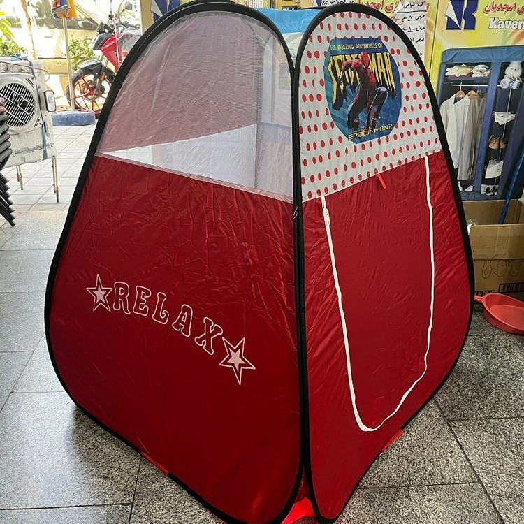 چادر بازی کودک مدل فنری تاشو طرح اسپایدرمن ( مردعنکبوتی ) رنگ قرمز توری دوزی شده کد3