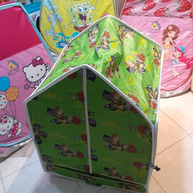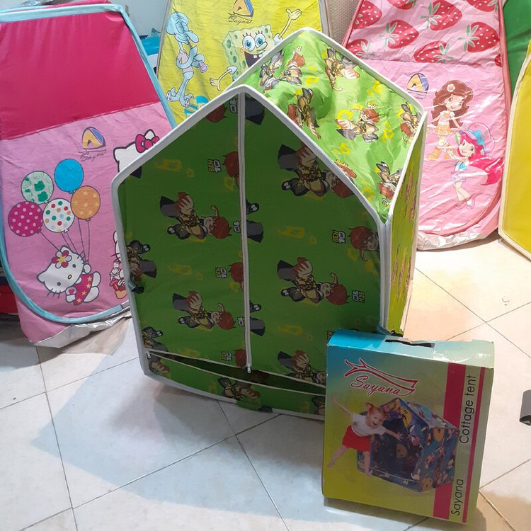 چادر بازی کلبه ای بن تن جنس پارچه از پلی استر فنرهای قوی بدونه بوی مواد ساخته شده کاملا استاندارد وبهداشتی برای کودک شما