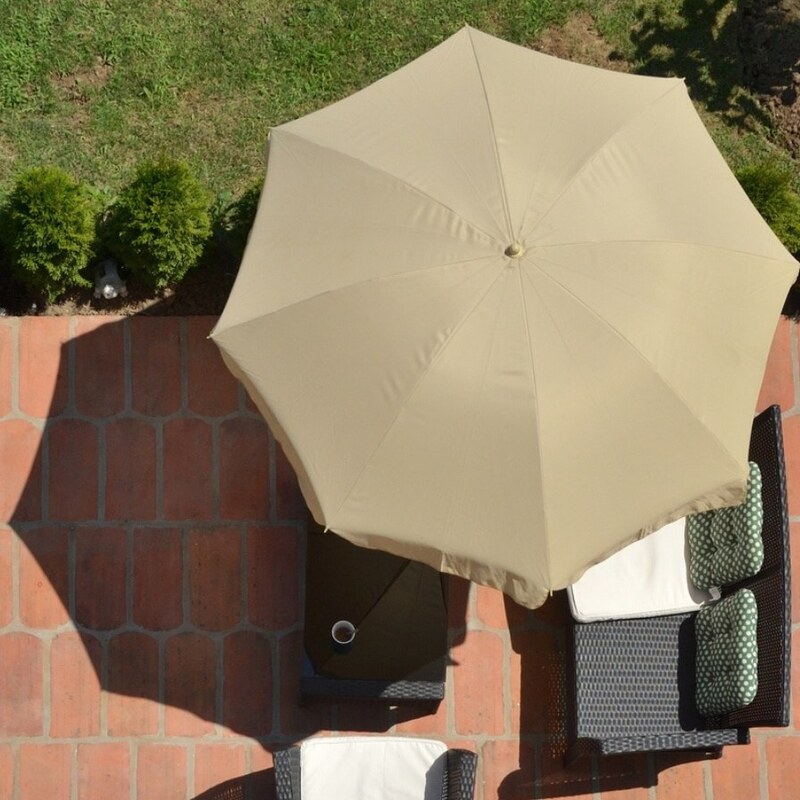 چتر گرد ۴ متری با پارچه نانو پایه وسط المینیوم حمل بعهده خریدار است با باربری ارسال می گردد و بصورت پس کرایه میباشد