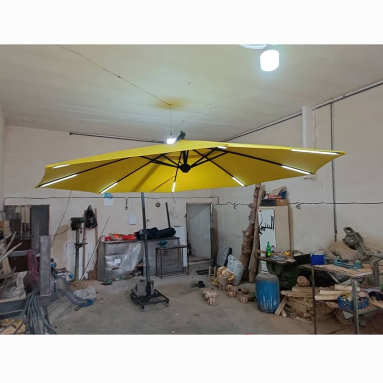 چتر با برزنت نانوآب گریز مناسب فضای باز پایه بتنی سنگین ارتفاع ۲۴۰ سانتی متر، طرح گرد و مربع دارد ارسال با باربری بصورت پس کرایه میباشد . هزینه حمل با مشتری است .