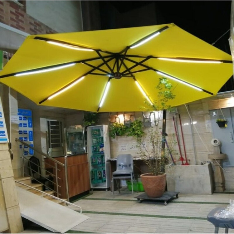 چتر پایه کنار با اسکلت فلزی و پارچه ضد اب و افتاب با کفی چرخدار که امکان جابجایی اسان رو به شما میدهد