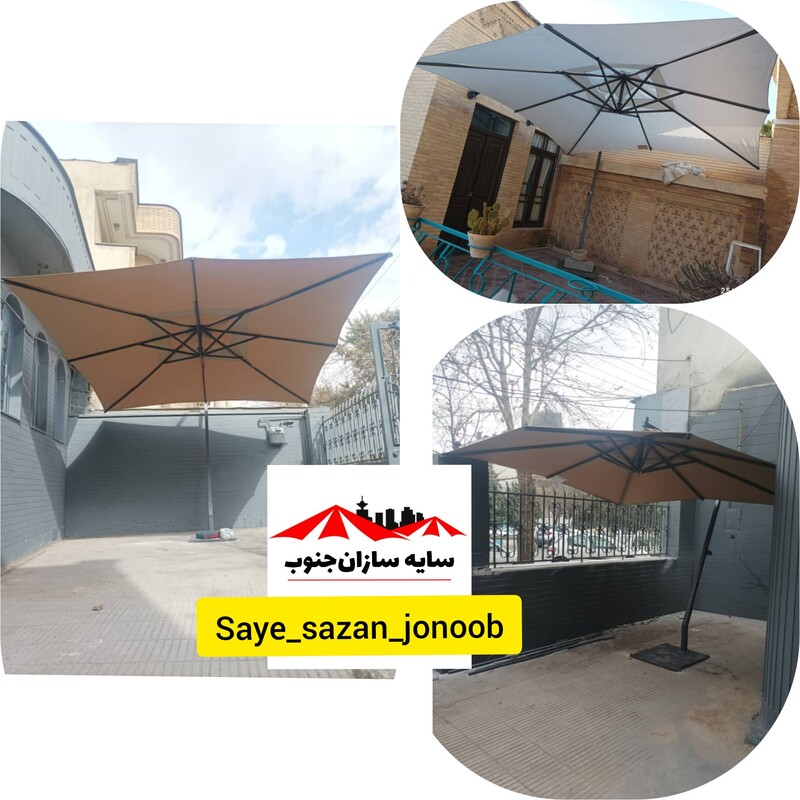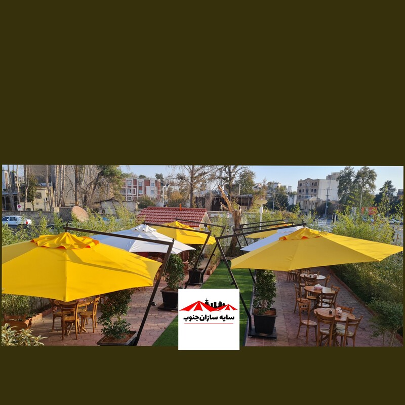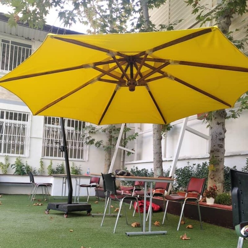 چتر پایه کنار با اسکلت فلزی و پارچه ضد اب و افتاب با کفی چرخدار که امکان جابجایی اسان رو به شما میدهد