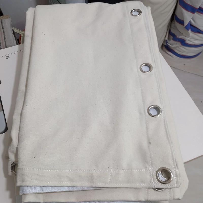 پرده برزنتی پنبه پلی استر سفید حلقه پانچی خارجی مناسب جلوگیری از ورود افتاب و سرما و گرما و همچنین گرد و غبار دوخت و حلقه در ابعاد و سایز مورد نظر شما