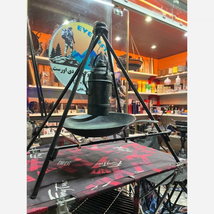 منقل سرخپوستی سایز کوچک با ارتفاع 1 متری قابلیت آویز کردن ساج و کتری و شامورتی و سیخ کباب و تاشو همراه با کاور بسیار سبک و کم جا