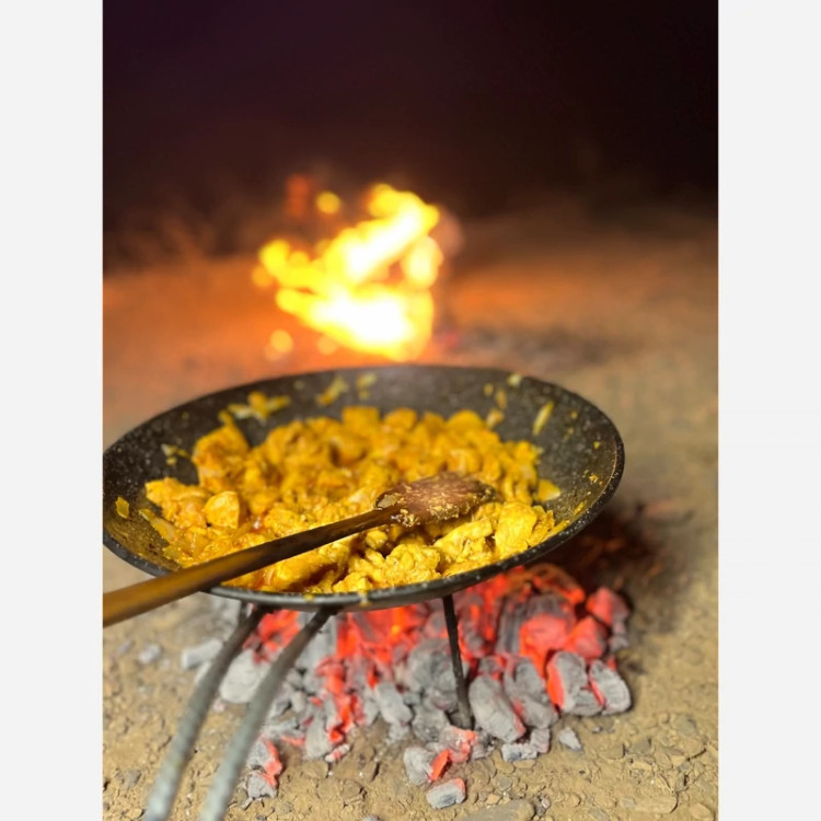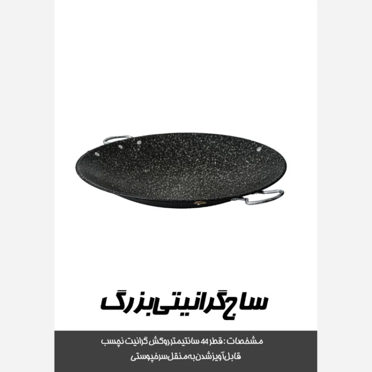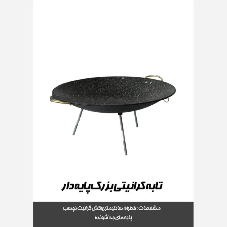 با سلام خدمت دوستان ساج همراه با سه پایه و قابل جداشدن قطر 43سانتی متر جنس فلزی با روکش گرانیتی همراه با کاور و سه پایه مناسب برای اشپزی در طبعیت