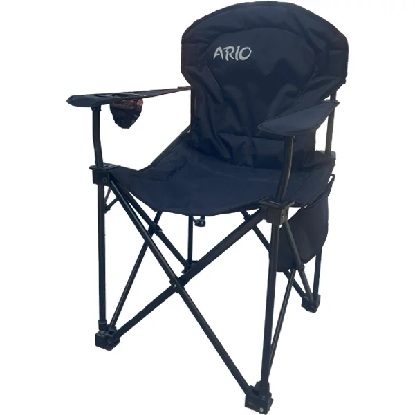 صندلی تاشو تک نفره آریو مدل 5324، مناسب برای کمپینگ و طبیعتگردی، پیکنیک، ماهیگیری و شکار، ساحل و تفریحات کنار دریا، کوهنوردی و پیادهروی طولانی، دارای جای لیوان و دسته