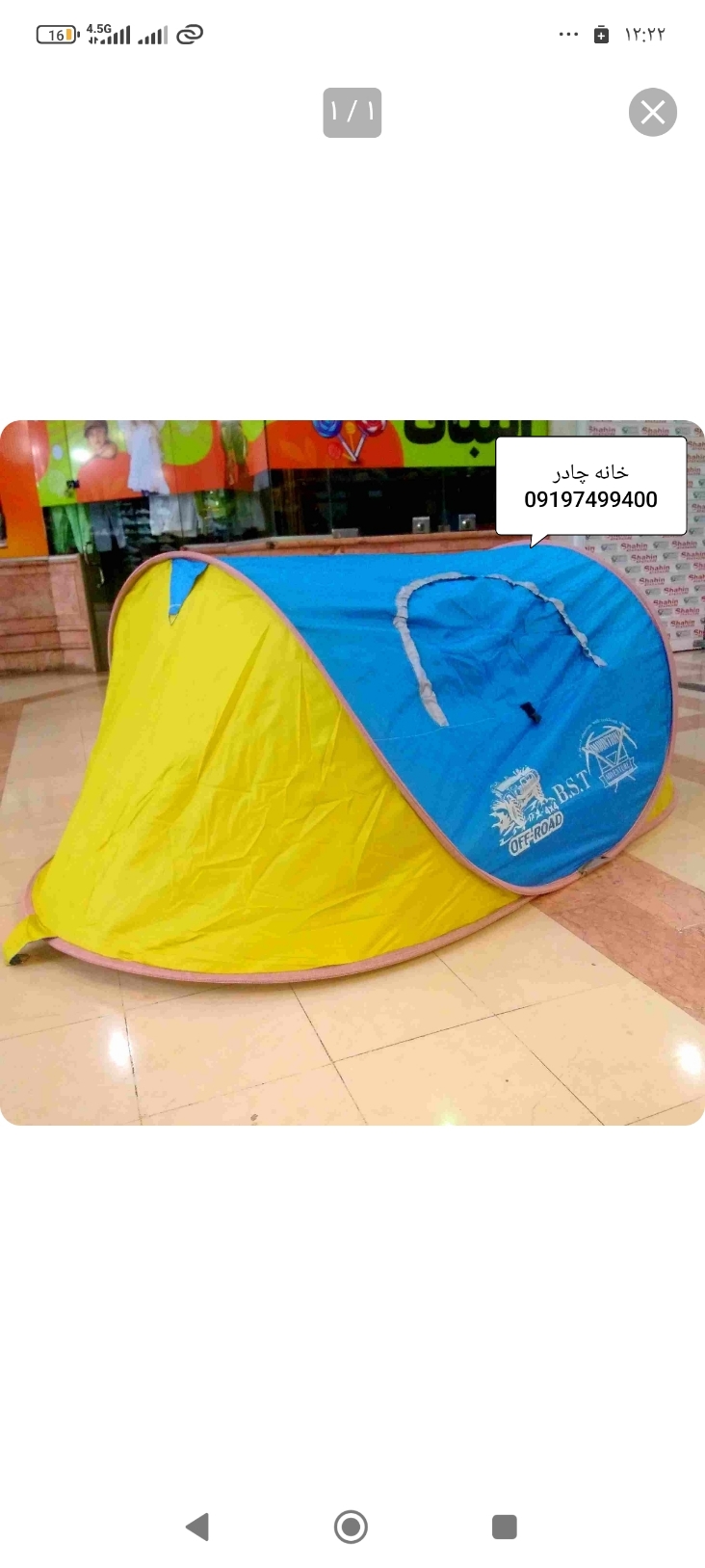 چادر صحرایی ضد آب ظرفیت ۱ نفر
