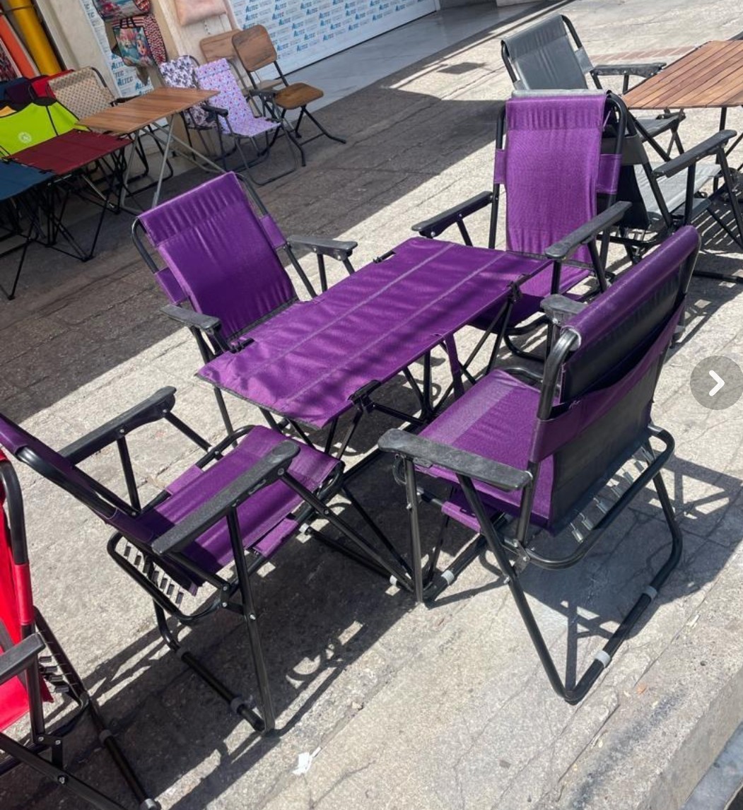 ست چهار نفره صندلی ساحلی تاشو 9 فنر و میز مسافرتی تاشو(پس کرایه)
